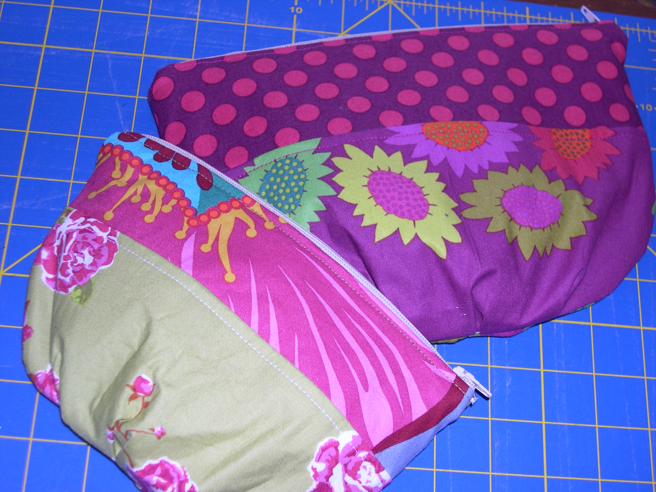 I made a couple makeup bags from Amy Butler’s Stash Bag pattern, which I really liked. The directions were easier to follow than I expected, since this was my first time making pleats.